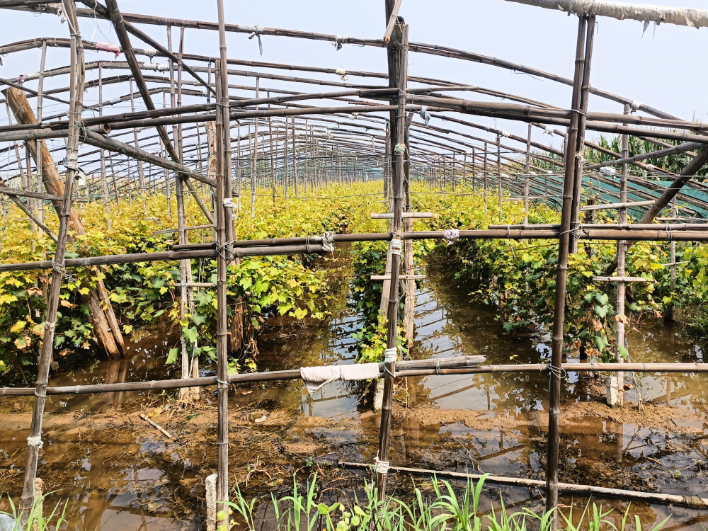 饶阳县葡萄棚室坍塌、损毁严重,初步统计,此次受灾葡萄棚室约15000个,面积约50000亩,目前仍有部分棚室积水较深。因饶阳葡萄栽培以暖棚为主,葡萄已上市,果农今年果品经济损失稍轻,但部分葡萄树体经过长时间水浸,树势难以恢复,明年可能会受到较大影响。
