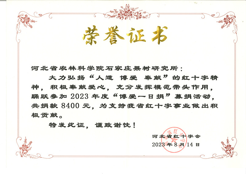 您所在的位置:首页 > 综合动态 今年7月底8月初,受台风“杜苏芮”影响,我省各地连续遭遇强降雨,发生区域性洪涝灾害。为帮助受灾群众灾后恢复重建,尽快恢复正常生产生活,研究所积极响应上级号召与要求,8月10日,全所63人参与由河北省红十字会组织的2023年度“博爱一日捐”活动,共计捐款8400元;8月15日,全所47名党员参与省直工委组织的捐款活动,共计捐款5200元。