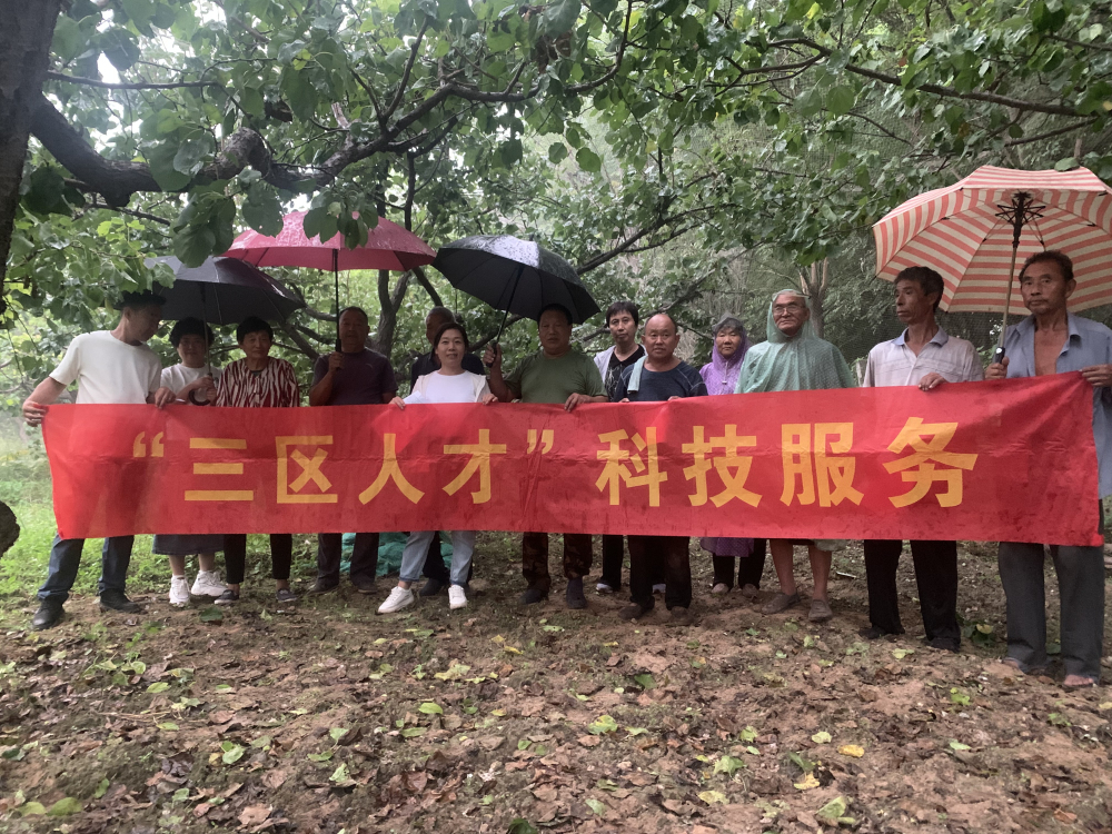 团队一行后到纪家寨村杏树种植基地,武晓红主任现场讲解了杏树秋冬季管理关键技术(秋施基肥、灌水及排涝、整形修剪、病虫害防治、树干涂白等),并发放了技术明白纸,同时就果农提出的问题进行了详细的解答。