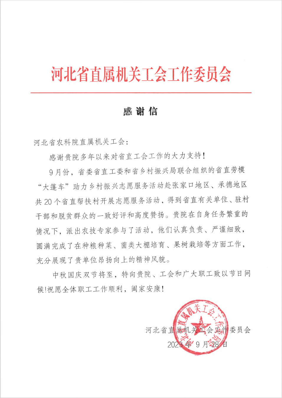 此次活动于9月27日完美收官。志愿服务活动先后到张家口市、承德市20余村开展送健康义诊、送农业技术、送科技、送法律、送文化、送温暖系列活动,所到之处受到省直各单位、属地党委政府、驻村工作队和当地群众的欢迎,广受好评,强力推进了省直帮扶村助力乡村振兴服务工作,取得了良好的社会效应,并被省、市、县等多重媒体数次宣传报道。