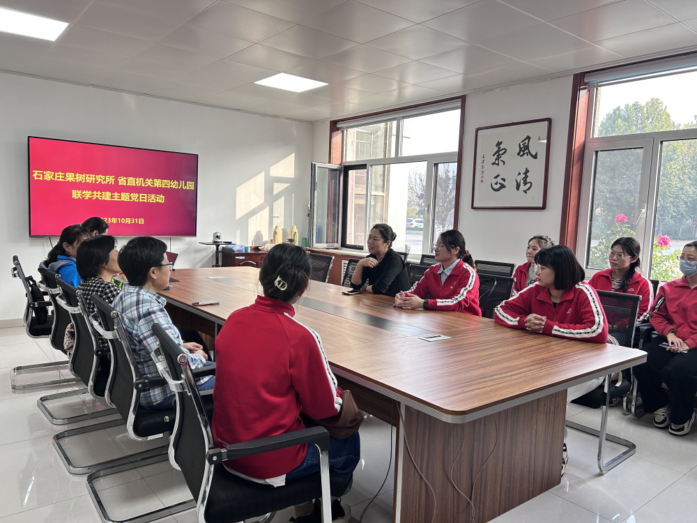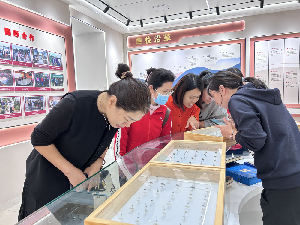 您所在的位置:首页 > 综合动态 2023年10月31日,省直机关第四幼儿园潘丽彦主任一行17人到我所开展联学共建主题党日活动。座谈会上,双方介绍了各自的业务及党建工作开展情况,加深了解。随后,潘丽彦一行参观了党员活动室、科技展厅,更加全面地了解了石家庄果树研究所的发展历史和科技成果,双方就党建工作进行了深入探讨交流。在标本室,通过观看精美的昆虫标本,老师们对科技工作者踏实敬业的工作态度和严谨细致的科学家精神赞叹不已。双方就对幼儿的农业知识科普教育和科学家精神教育达成了合作意向。