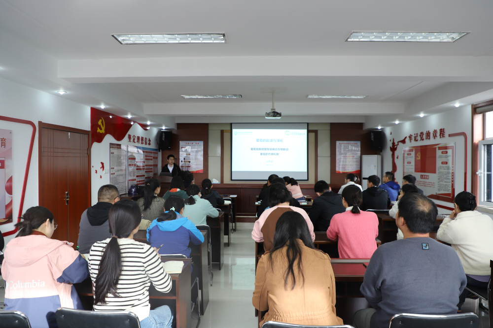 您所在的位置:首页 > 综合动态 为拓宽科研人才视野,把握科技前沿,有效推动人才培养工作落实,2023年11月3日,青委会组织开展学术交流活动,邀请中国农业大学园艺学院果树系副教授、博士生导师关平印以“葡萄细胞微管骨架响应生物胁迫重组的作用机制”为题做专题学术报告,石家庄果树研究所科研人员40余人参加。关平印副教授博士就读于德国卡尔斯鲁厄理工学院,主要从事葡萄逆境胁迫与形态建成的细胞分子机理研究。此次报告从葡萄起源演化、葡萄发育学、葡萄细胞微管骨架响应真菌胁迫分子机制三个方面展开,讲授内容前沿新颖,参会科研人员兴致浓厚,汇报结束后,多名科研人员提出问题,并与关老师进行了进一步交流与探讨。