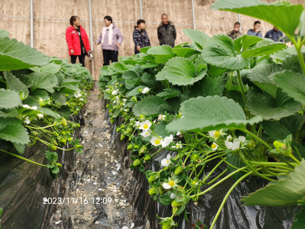 您所在的位置:首页 > 综合动态 受辛集市农广校及辛集市跃鑫果蔬种植专业合作社邀请,2023年11月16日,我所草莓研究室主任杨雷研究员、李莉研究员赴辛集市张古庄村进行2023年辛集市高素质农民技术培训、田间技术指导,并就我所选育的设施草莓新品种‘冀九’进行田间观摩,‘冀九’目前已经开始成熟上市。该镇目前种植草莓 2000余亩,有“草莓之乡”的美称,草莓已经成为辛集市张古庄镇的特⾊产业,是农民致富、乡村振兴的重要途径。