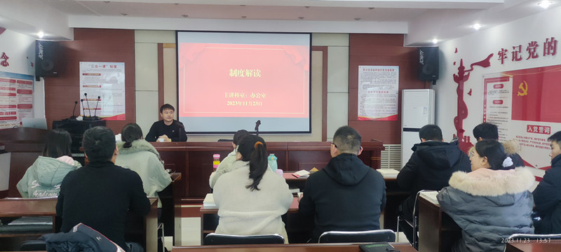 您所在的位置:首页 > 综合动态 为进一步推进我所的规范化管理,促进管理制度顺畅有效执行,11月21-23日,我所在党员活动室举办了新入职人员座谈交流会,就管理科室制度进行了解读。