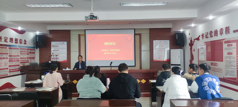 各管理部门人员就部门内重要制度办法,如科技管理科(科研项目管理、科研资助基金项目管理等)、人事科(工资福利、职称评聘、人事管理等)、办公室(档案制度、值班制度、公章管理、物资统一采购等)、财务科(开支报销制度、国有资产管理办法、审计问题通报办法)的适用范围、审批程序、容易出现问题等与职工息息相关并亟需了解的内容认真剖析、详细讲解,并结合日常工作中实际情况进行举例说明。会上,管理科室代表还对制度的内容进行了现场交流和答疑,确保制度内容宣讲到位。参会人员认真听讲,积极探讨,气氛活跃,效果良好。