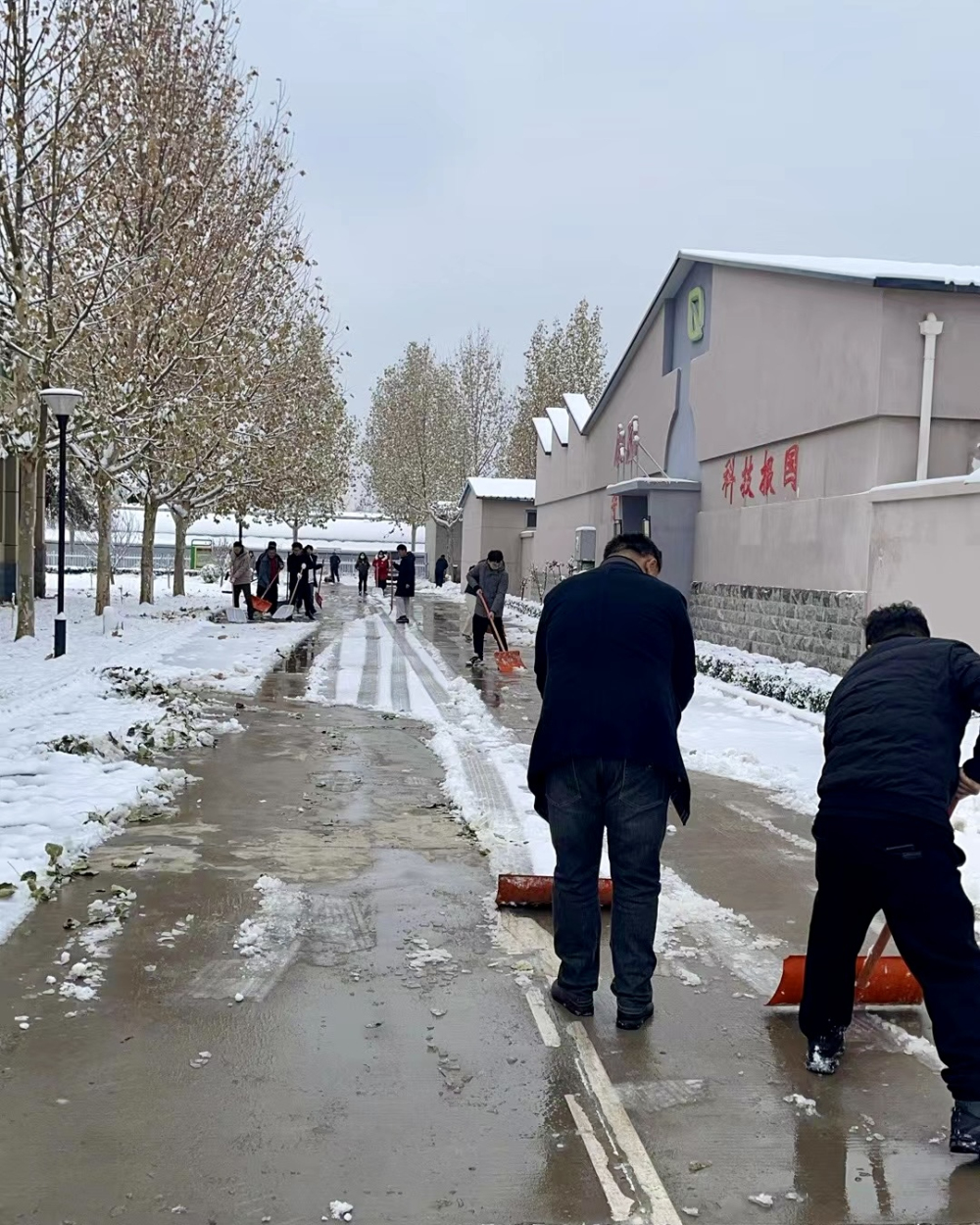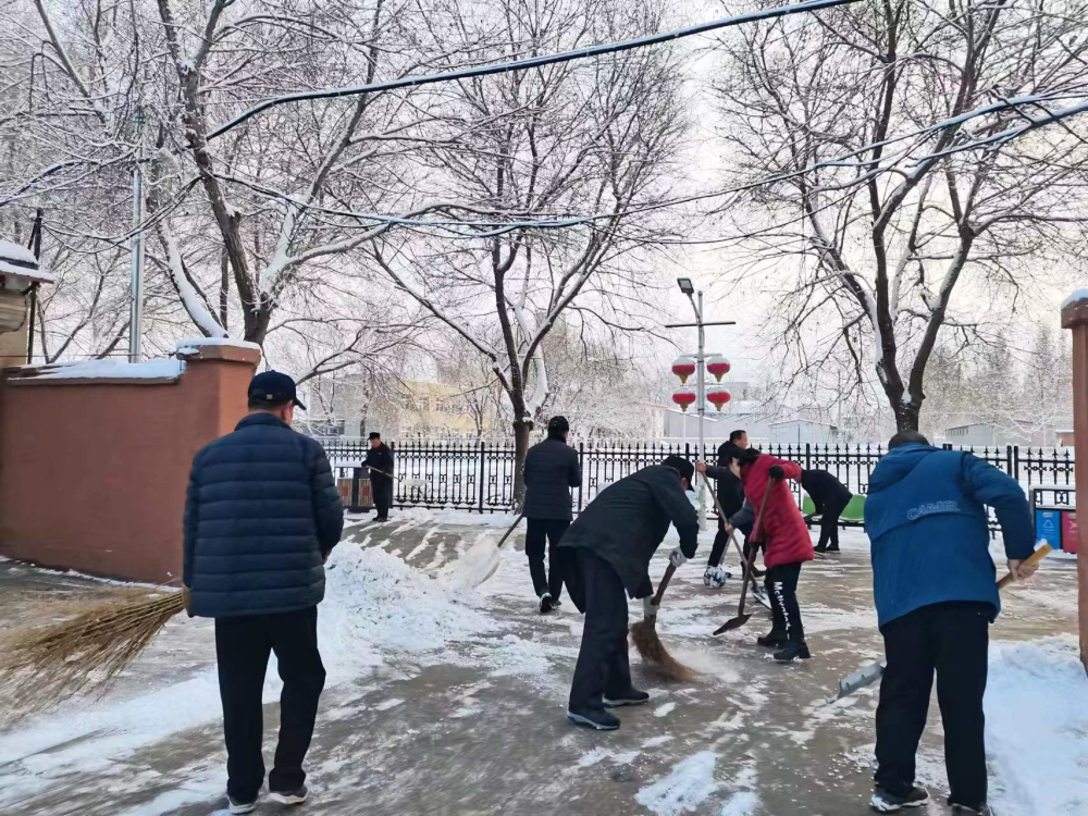 您所在的位置:首页 > 综合动态 为确保道路通畅和干部职工出行方便,2023年12月11日上午,我所组织开展了清扫积雪活动,全所共计50余人参加。广大党员们充分发挥模范带头作用,以饱满的热情带动大家积极参与到扫雪活动中来。活动如火如荼,寒冷的天气阻挡不了大家劳动的热情,银白的雪花映衬出了大家脸上的笑容,一个个忙碌的身影齐心协力、干劲十足,大伙儿拿着扫雪铲不畏严寒、齐头并进,对办公区和家属区人行道、车行道上的积雪进行了清理。通过此次清扫积雪活动,不仅使大家出行安全便捷,更提高了全体职工团结协作的凝聚力,共同营造了干净整洁的工作环境。