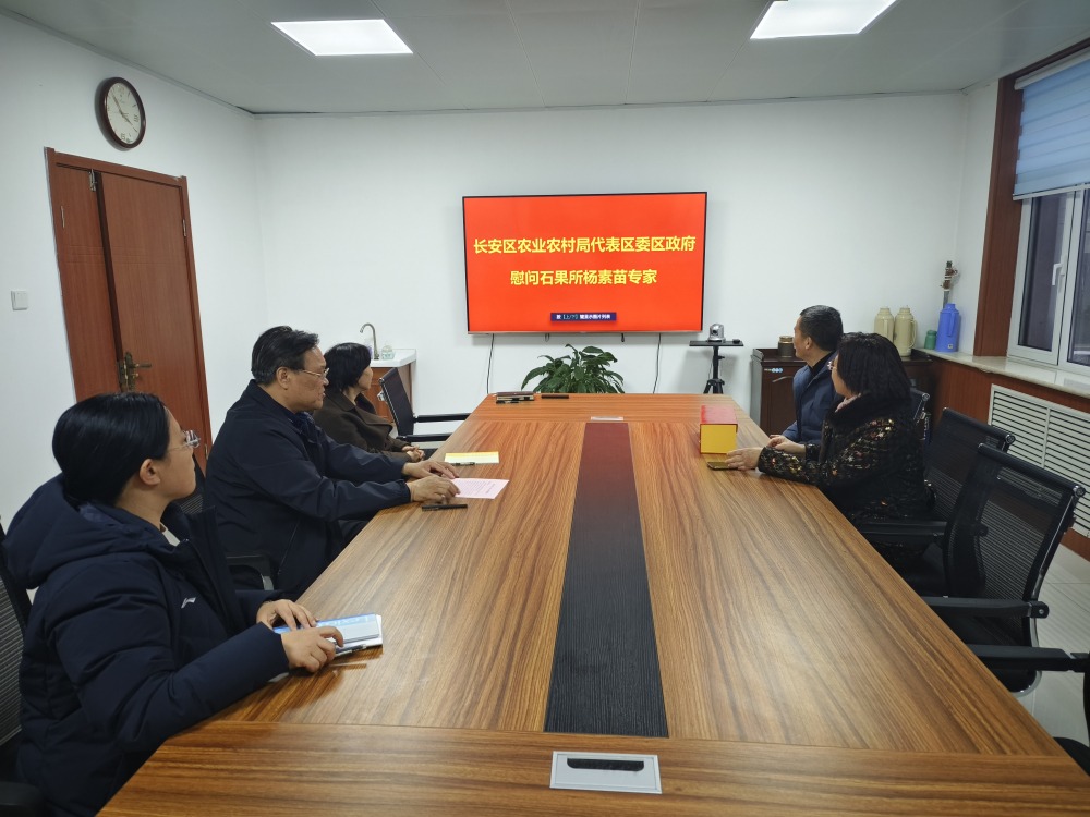 2024131日,长安区农业农村局代表长安区委区政府到石家庄果树研究所慰问以区政府建议专家杨素苗副所长为代表的科技专家。