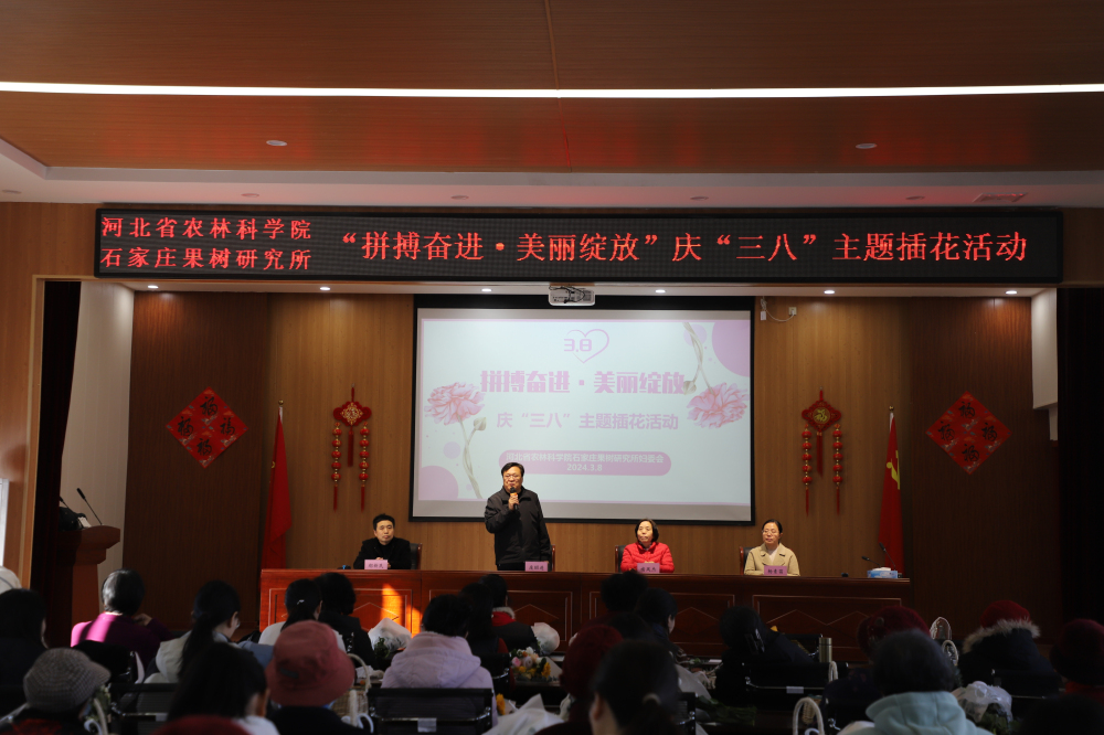2024年3月8日,为庆祝“三八”妇女节,我所妇委会组织开展“拼搏奋进·美丽绽放”主题插花活动。庞昭进所长代表所领导班子向广大在职、离退休女职工致以节日的问候和祝福。随后,女职工在插花老师的指导下,进行了插花创作,有的错落有致,有的花团锦簇,每一件作品都凝结了女职工对生活的热爱和对美的追求。广大女同胞在鲜花和欢笑中度过了一个难忘的节日。