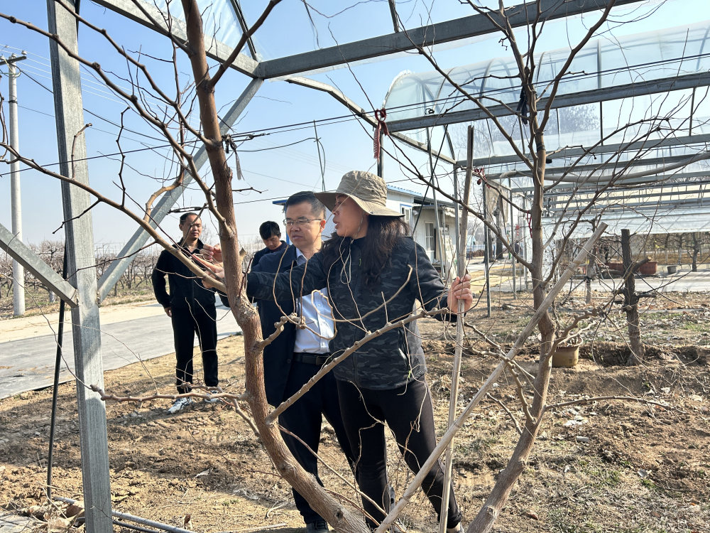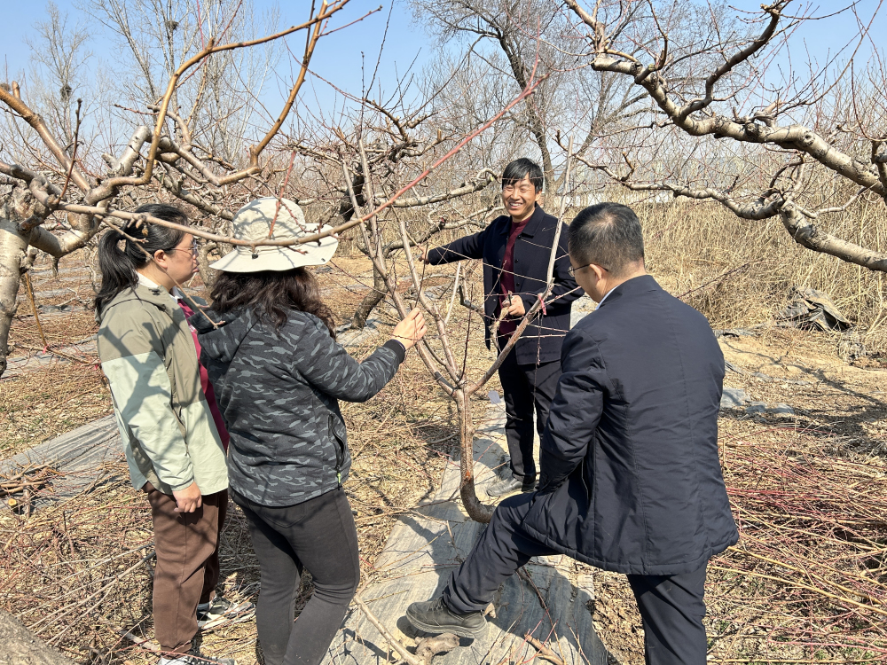 王鸿所长参观了我所国家桃产业技术体系桃、枣两个综合试验站的试验示范园,查看了保存的红花、白花山桃、红木质山桃等特异桃树砧木情况,了解了枣树避雨、篱壁形树形等情况。同时,双方就桃树砧木资源的保存、无性系扩繁、抗性评价及枣树修剪等问题进行了深入交流讨论。