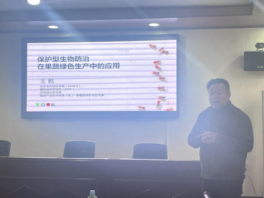 北京市农林科学院王甦研究员针对目前果树化学防控用药现状,强调了生物防控的重要性,用生动的实例阐述了生物防控的效果和效益,加强了枣农对生物防控的认同。我所贾彦丽研究员就赞皇大枣目前常见病虫害发生现状,针对性地讲述了具体的防治方法,提升了枣农用药的规范性。