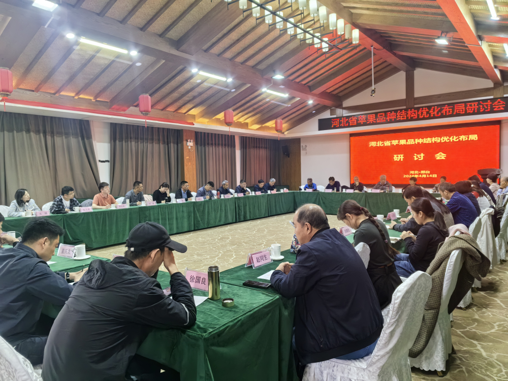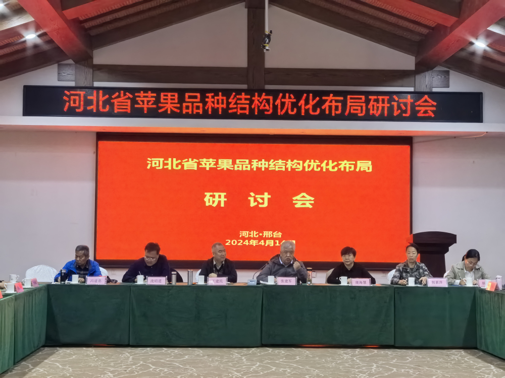 2024年4月14日,河北省现代农业产业技术体系苹果创新团队联合河北省农业农村厅特色产业处山地苹果集群专班、河北省特色产业协会苹果专委会,在邢台沙河市召开了“河北省苹果品种结构优化布局研讨会”。院党组成员、副院长、苹果创新团队首席专家张建军出席会议并讲话,省农业农村厅特色产业处⼀级调研员王建⺠、科学技术处副处长庞海慧,省特色产业协会苹果专委会会长杨振宇、秘书长杨素苗,创新团队岗位专家、综合试验站站长及团队成员,邢台、邯郸、保定等地企业代表等 40 余人参加了会议。