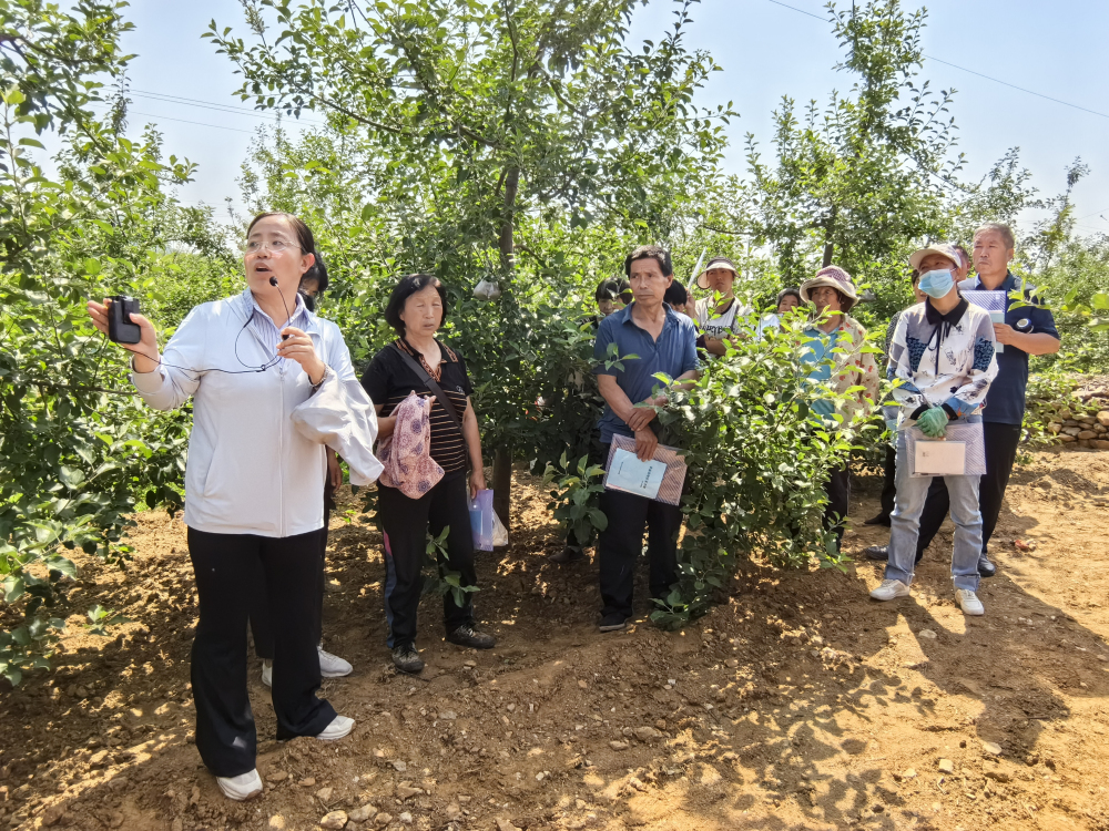 您所在的位置:首页 > 科技服务 针对我省邢台苹果优势产区近年来生产中普遍存在的早期落叶病频发、水肥管理粗放等影响苹果品质提升的突出问题,5月23日,我所杨素苗研究员、徐国良研究员等专家联合河北农业大学、邢台市农科院举办苹果栽培技术现场培训会,促进邢台地区苹果产业绿色健康发展。