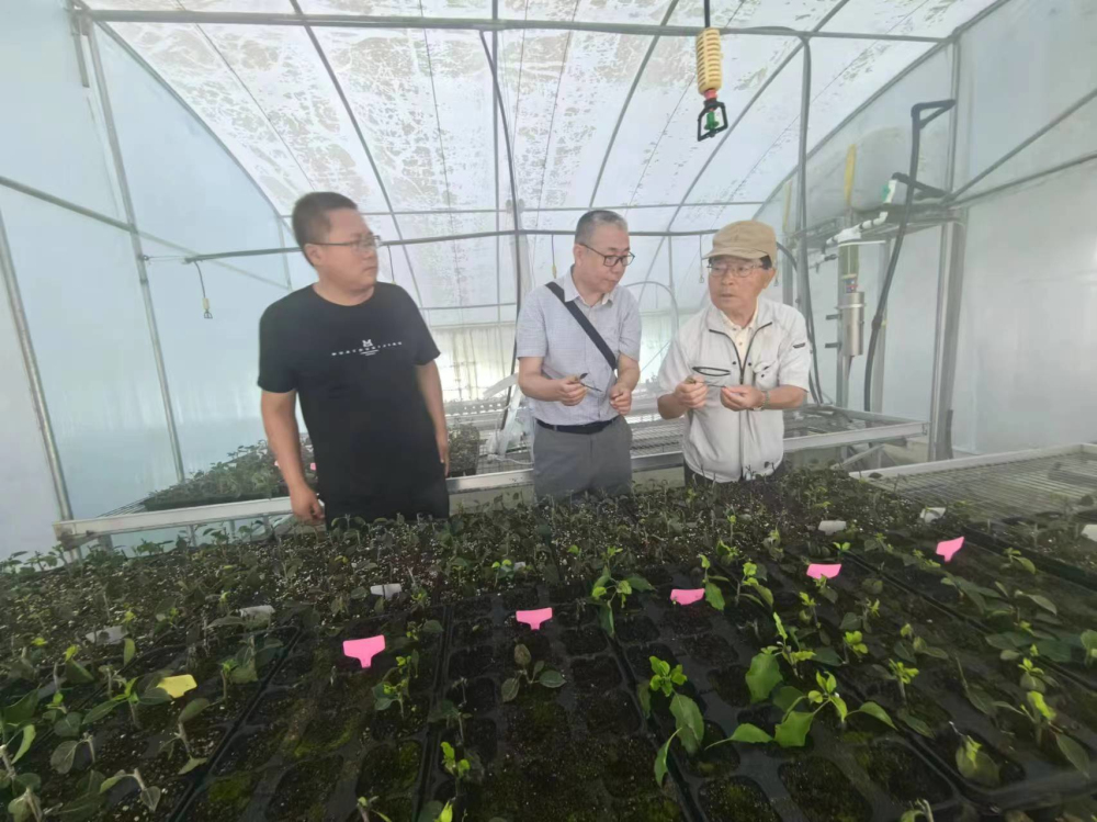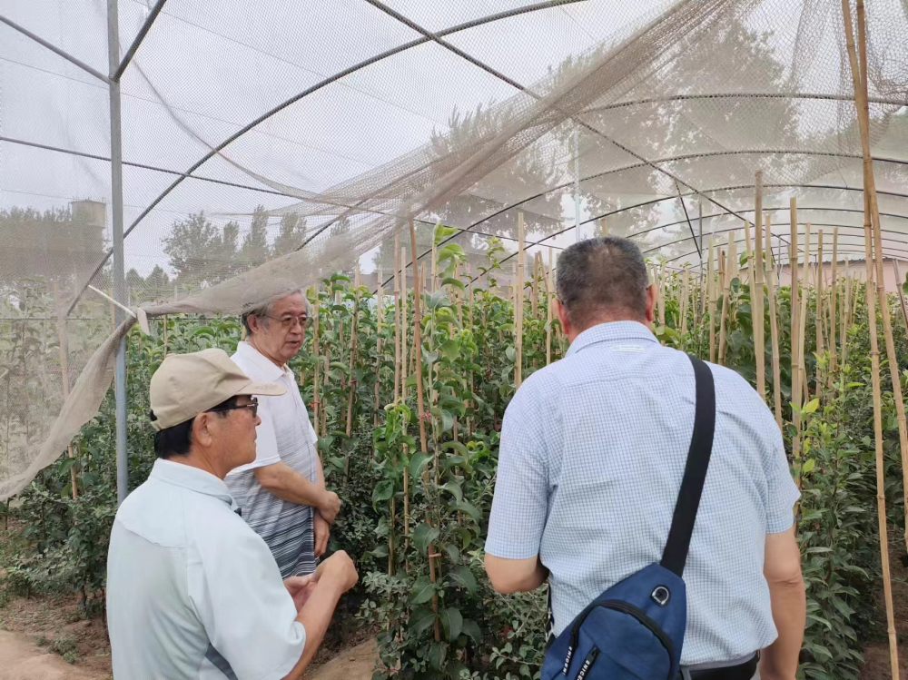 伴野先生还到我所试验地实地进行了调查。对实生苗尽快度过童期的管理技术、苗头优系的高接管理技术提出建议,共同制定了苹果整形拉枝管理技术方案。梨砧木课题组现场介绍了选出的矮化砧木为基砧嫁接主栽品种生长现状,展示了不同湿度处理嫩枝扦插愈伤组织生成情况。