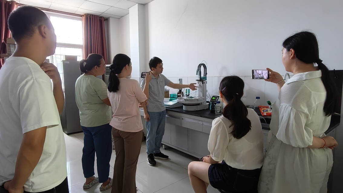 您所在的位置:首页 > 综合动态 为提高科研人员技术和实验室综合服务能力,完善酸碱、金属离子、氧化还原反应等物质的浓度和化学反应终点的分析条件。2024年8月21日上午,应全体科研人员要求,综合实验室邀请瑞士万通公司工程师就自动电位滴定仪使用技术进行了现场培训。