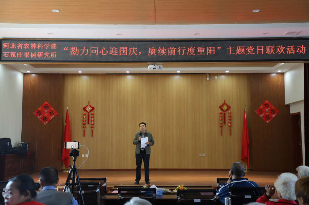联欢活动上,鄢新民副所长代表全体干部职工为退休职工们送上深深祝福,向退休职工介绍了研究所近期发展情况及取得业绩。他表示,老一辈科技专家、科研工作者是石果所的宝贵财富,研究所现今取得的发展成就离不开老同志们打下的坚实基础。老一辈科学家“爱国奉献,艰苦创业,勤奋务实,淳朴善良”的优良传统和“守正创新,开拓进取,探索求真,协同育人”的科学家精神值得青年科技工作者学习和继承。
