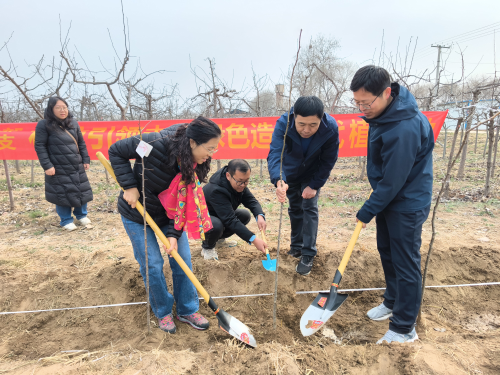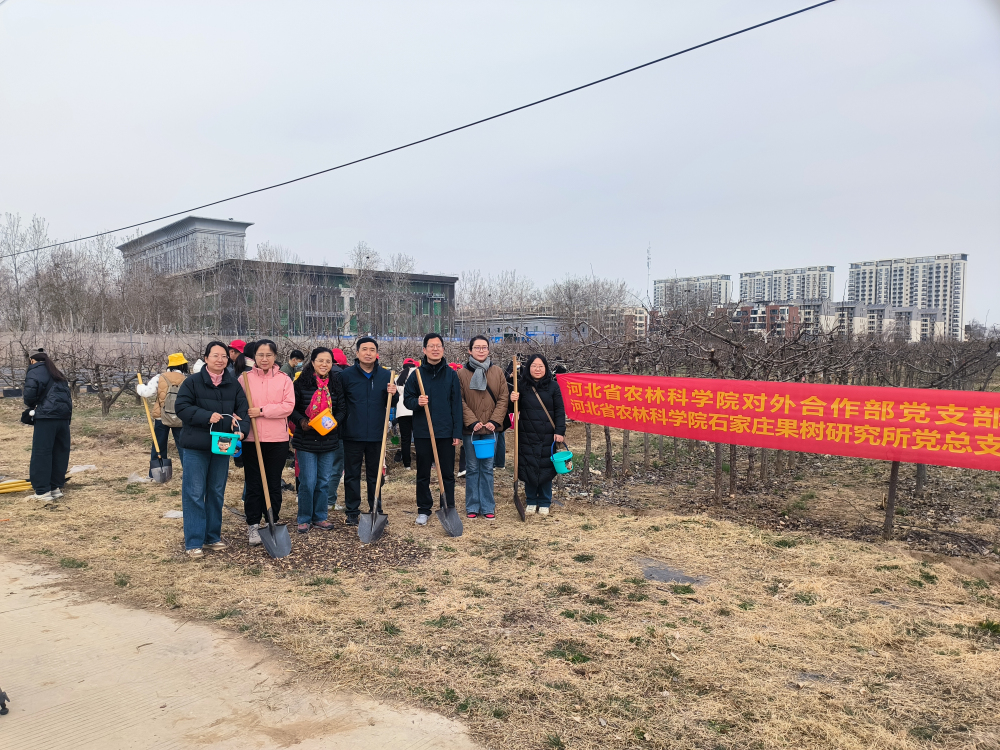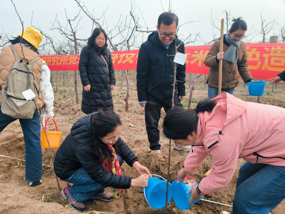 春风轻拂,大地回暖,2025年3月15日,所党总支与院对外合作部党支部在我所开展“科技引领未来 绿色造福后代”植树活动。亲手种下一棵树苗,培土、浇水,看着它在春风中扎根,是一次亲近自然的奇妙体验,更是一次责任与担当的践行。栽下的一棵棵小树苗,为大地增添了一抹新绿,为人类创造一个更清新的环境,为子孙后代留下一片美丽的家园。这次植树活动,地点选择在我所梨研究室试材地,树种为梨的杂交苗。支部成员在亲手体验植树的挖坑、培土、提苗、浇水细节中,与科技人员交流、了解果树知识。恰逢石家庄广播电视台组织的“用绿色播种未来 让城市听见童声”儿童城市实践活动开展,现场好不热闹。