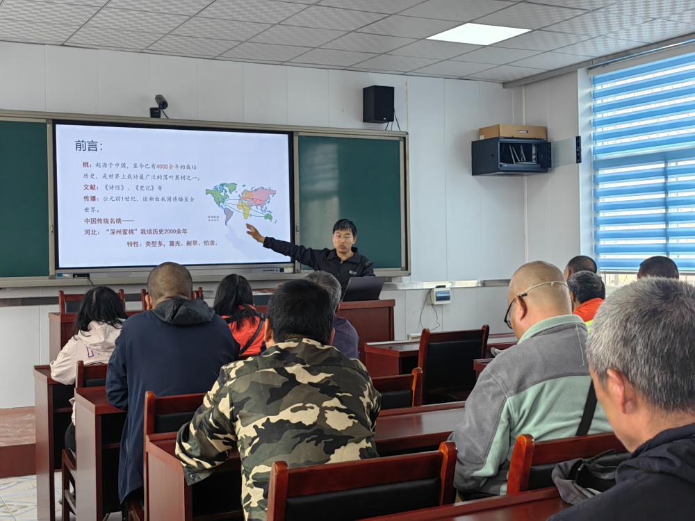 为助力农村残疾人产业技能提升,拓宽就业渠道,促进残疾人再就业。5月9日-11日由深泽县残疾人联合会主办,河北农哈哈机械集团有限公司承办了残疾人产业技能专家技术培训活动,特邀我所桃研究室王越辉研究员开展“农村残疾人桃树种植及病虫害防控技术培训”会,深泽县残疾人联合会、河北农哈哈机械集团有限公司相关人员,及来自深泽县农村的残疾人,共计100余人参加了培训。