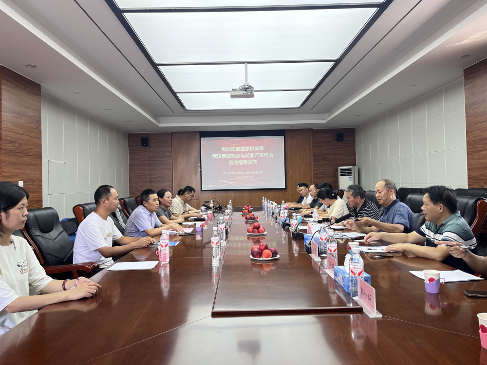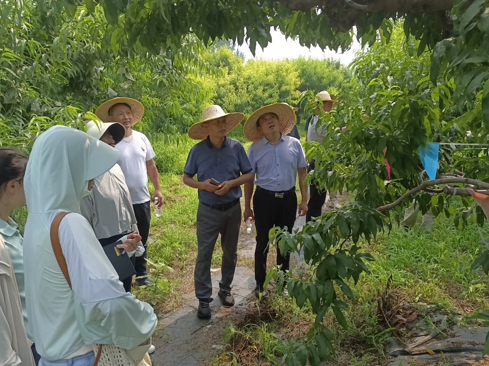 2025年7月12日,国家桃产业技术体系武汉综合试验站站长、湖北省农业科学院果树茶叶研究所何华平研究员,原国家桃产业技术体系连作障碍及果园生态岗位专家、华中农业大学李国怀教授,及湖北桃产区代表一行10人到我所交流指导,我所主要负责人及桃、干果研究室团队成员出席参加。