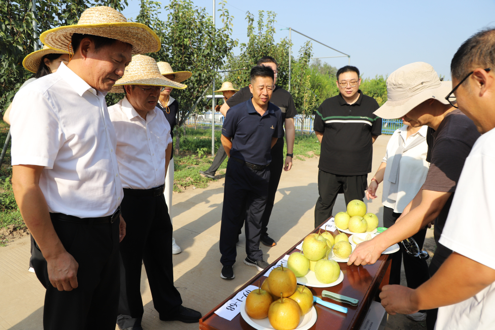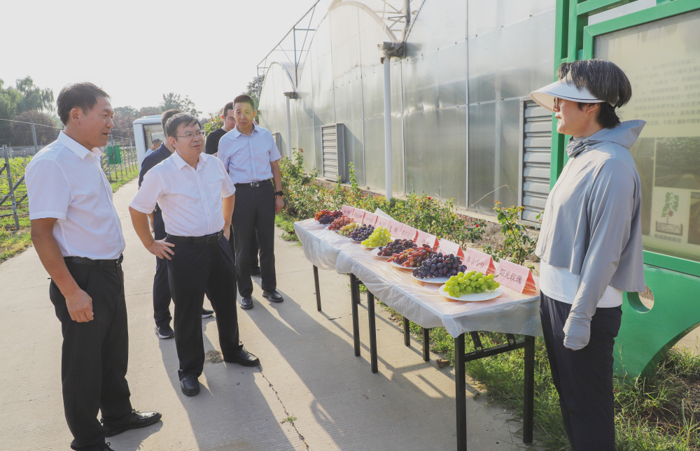 高一雷一行参观了我所科技文化展厅,全面了解研究所发展历史、创新成果、科技服务、党建文化等工作。参观了果树根系观测系统科研平台,实地考察了枣、梨、桃、苹果育种、葡萄示范园区,着重调研了种质资源保护与利用现状、自主培育品种成果、产业难题等。高一雷充分肯定了石果所育种工作,对自育品种品质给予了高度评价。