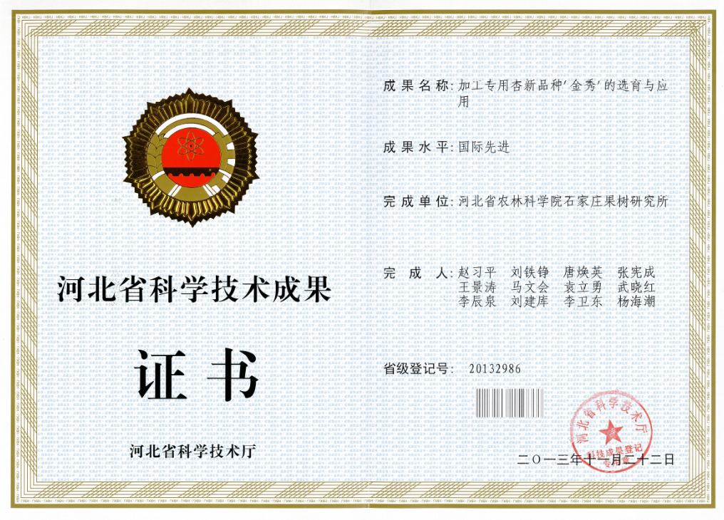 加工专用杏新品种‘金秀’的选育与应用